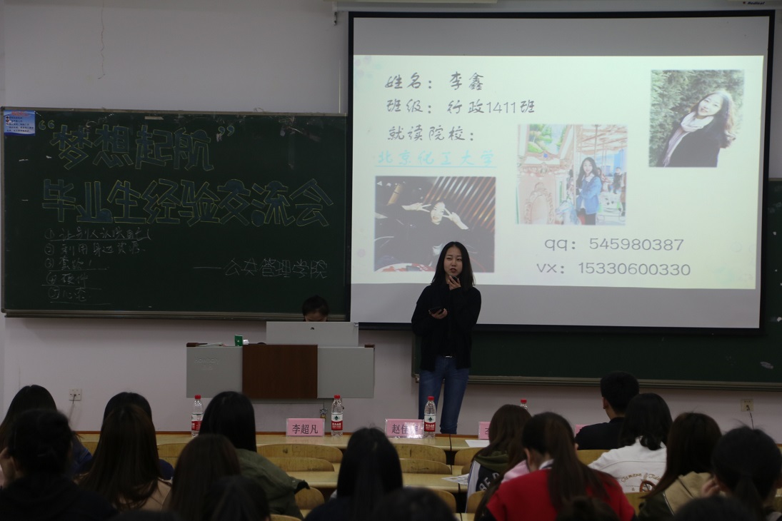 学习部主办的第十一届“梦想起航”优秀毕业生经验交流会已于2018年4月26日晚6点半在教学楼1111教室准时召开。应邀出席本次交流会的优秀大四毕业生代表分别是:许岩、李超凡、赵佳鑫、李鑫和王言杰。他们就考公、考研和就业三方面和在座的大一大二同学们分享了宝贵经验。