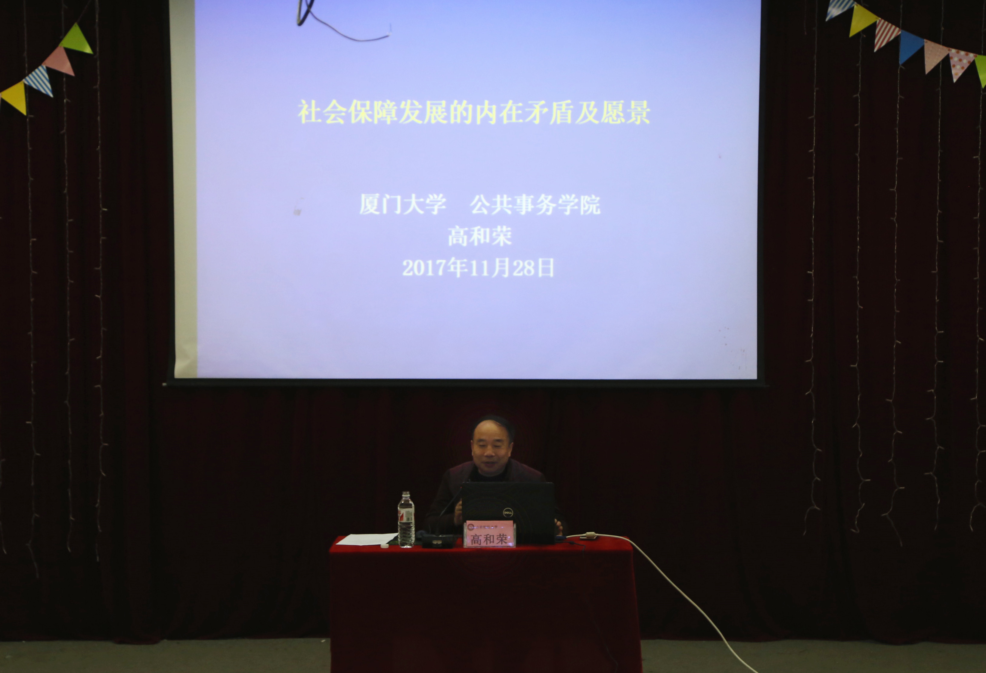 (通讯员 张源淇)为了使学生们对本专业进行更加全面和深入的认识,明确他们的就业前景。11月29号下午,厦门大学社会保障专业高和荣教授,在1101报告厅为我院学生做了一场“关于社会发展的内在矛盾及愿景”的报告会。参加本次报告会的领导和嘉宾有杏吧原创 党总支书记李俊生,杏吧原创 院长蔡向东,杏吧原创 党总支副书记梁烨,杏吧原创 团委书记孙之光,以及学院全体教师。