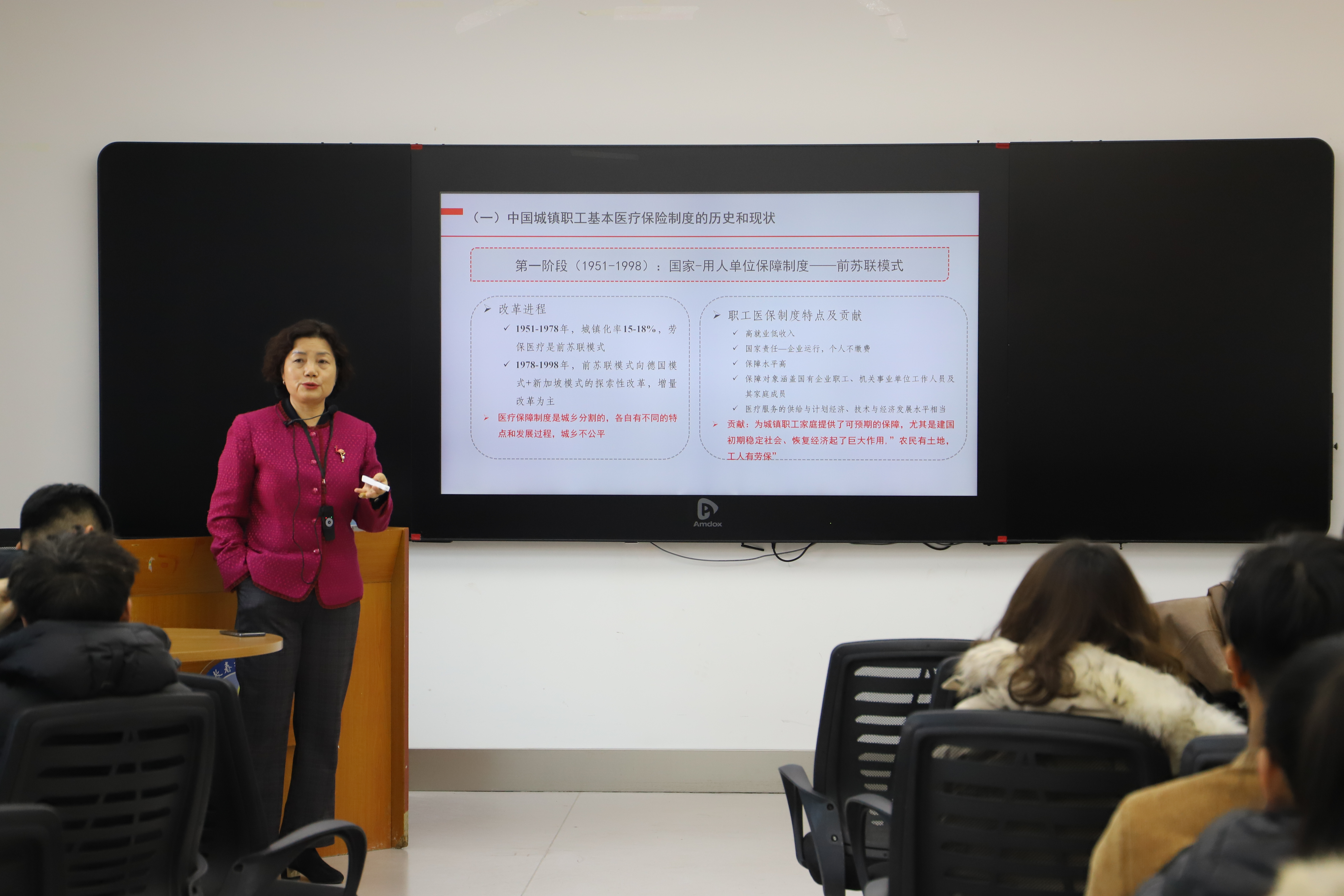讲座上,李教授从医疗保险的发展历程与成就、全民统一医疗保险的实现路径两个方面层次分明、条理清晰地开展了此次《全民统一医疗保险的实现路径》专题讲座。