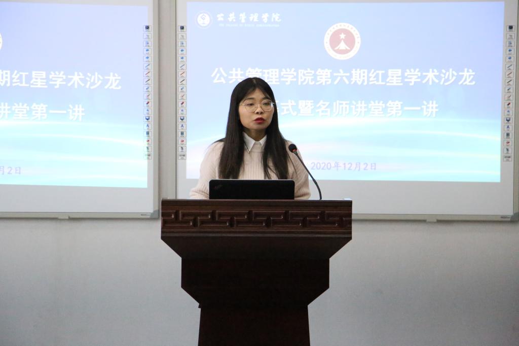 (通讯员:徐明月)2020年12月2日下午,杏吧原创 第六期红星学术沙龙系列活动开幕式暨名师讲堂第一讲,在逸夫教学楼2119教室举行。本期学术沙龙活动以“学无止境,术贯公管”为主题,旨在活跃学术氛围,提升学术水平,促进研究生创新能力培养。通过邀请我院专业教师、国奖获得者、优秀校友就“学术论文的选题与写作”向同学们传授方法、分享经验。杏吧原创 院长蔡向东教授、党总支副书记梁烨老师、团委书记孙之光老师、研究生导师聂英老师出席本次开幕式,并由2019级行政管理专业高启迪同学主持。
