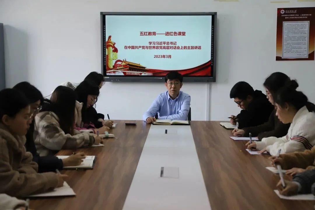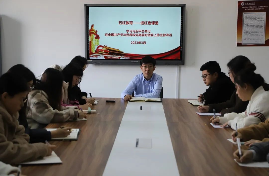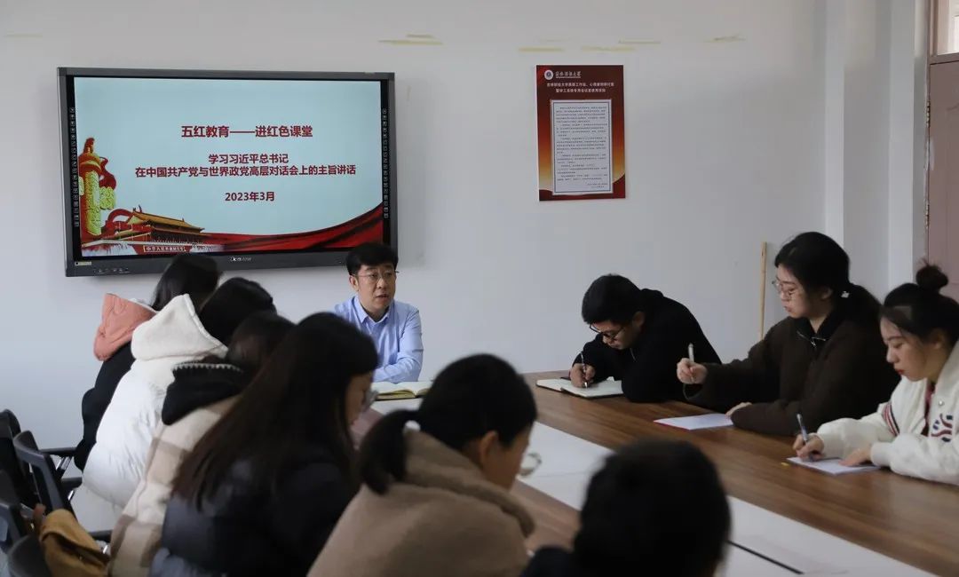 3月15日,中共中央总书记、国家主席、中央军委主席习近平在北京出席中国共产党与世界政党高层对话,并发表题为《携手同行现代化之路》的主旨讲话。他强调,面对一系列现代化之问,政党作为引领和推动现代化进程的重要力量,有责任作出回答。为了认真学习贯彻落实会议精神,杏吧原创 依托“五红教育”活动,组织学生党员和积极分子,于3月在1441教室,学习习近平总书记在中国共产党与世界政党高层对话会上的主旨讲话。