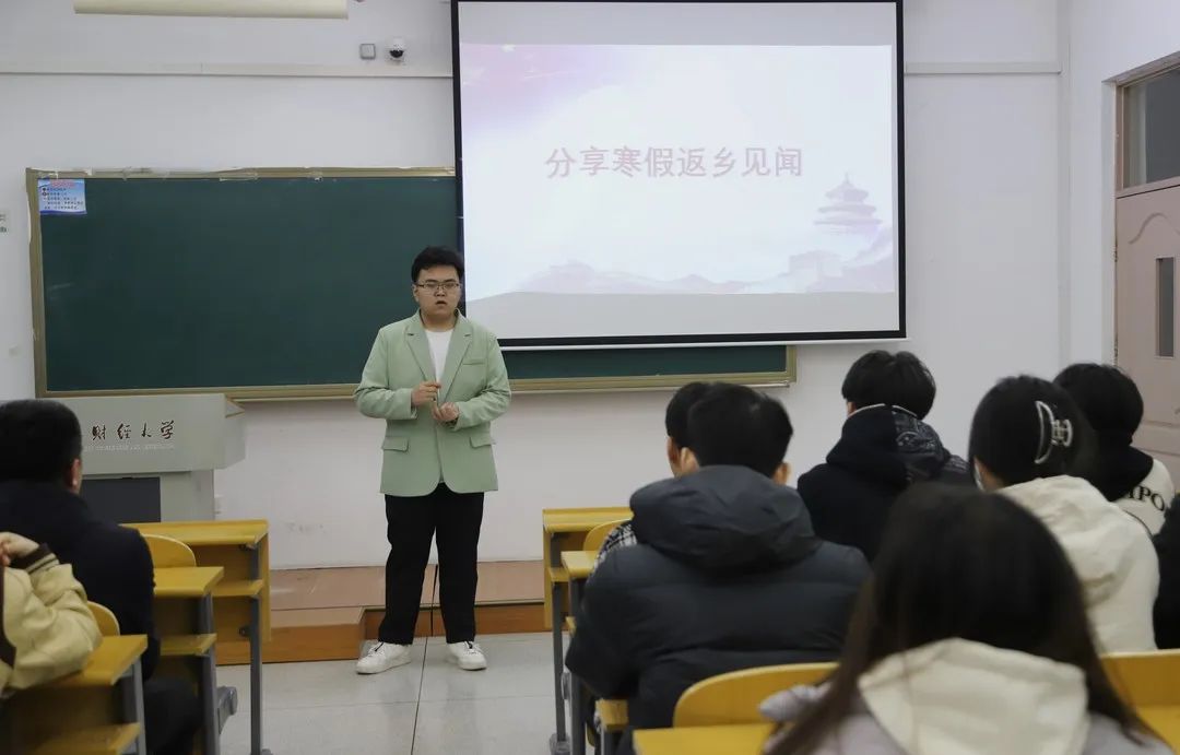 此次班会出席的有团委老师白宇和部分学生会成员。首先由三位学生会轮值主席介绍班会内容并分享了自己的寒假返乡见闻,鼓励同学们多参加社会实践,立下新学期努力的目标与未来的职业规划。最后由白宇老师开展学情分析与指导,围绕同学们提出的成长困惑及关心的就业、升学等问题提供有针对性的教育引导,并对同学们表达了深切的关爱,激励大家深入学习与探索,坚定不移的向自己的目标前进。