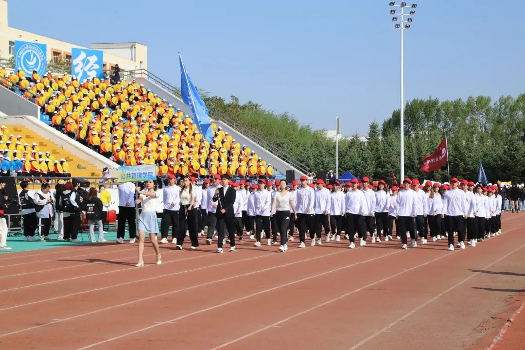 明媚的红色迸着青春的活力,公共管理几字更显突出,白衣黑裤,整齐划一的服装彰显着公管学子的蓬勃朝气,迈着坚定的步伐,迈着坚定有力的步伐,喊着响亮的口号,向主席台走去,展现出了公管院的自信与风采。
