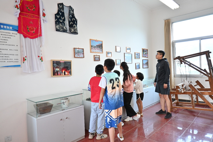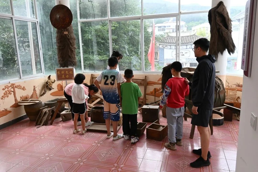 随后,一行人来到沙朗农耕文化展览室。大家了解到全乡常用耕地面积10091.24亩,其中水田面积5659.91亩,旱地面积4431.33亩;有红壤、水稻土、紫色土、粘土等土壤类型,盛产烤烟、蔬菜、水稻、小麦、玉米等农作物。同行的小朋友热情的为志愿者们介绍农具的类型,各类不同农具的使用方法,孩子们生动的分享既增强了志愿者与孩子们的感情,又增加了志愿者们的农耕知识。稻田作为我国传统农业的重要组成部分,承载着丰富的文化内涵和历史记忆,通过对沙朗农耕文化的了解,有效地传承了中国传统文化,使年轻一辈更了解和热爱稻田文化。