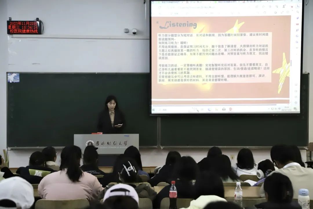 (通讯员:罗捷)为了使同学们对四六级题型、难度有所了解,对于同学们在准备考试的过程中遇到的困惑和问题给予高效准确的建议,帮助同学们能在四六级考试中从容不迫,游刃有余,合理管理时间,减少迷茫与焦虑,杏吧原创 于11月22日晚18:00在第一教学楼1422教室举办四六级经验分享会。本次交流分享会邀请了任颐芳学姐、何子安学长、赵宋鑫学姐、姚思桐学姐、李昔纯学姐、王楚越学姐为大家进行四六级经验分享,23级全体同学参会。