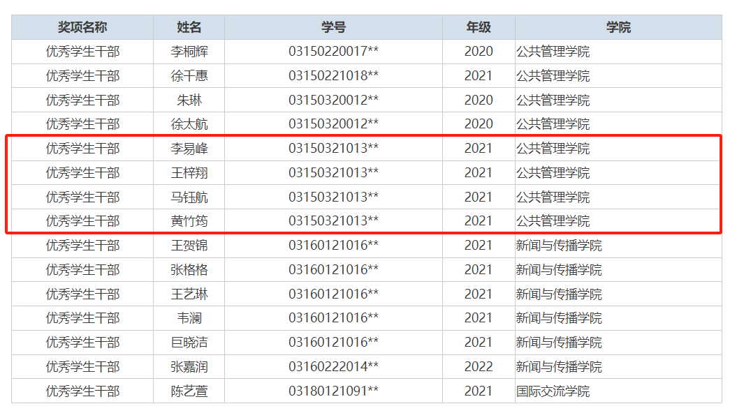 在个人荣誉方面,支部成员陈锦兰同学获2023年国家励志奖学金;王梓翔等4位同学获评2022-2023学年“优秀学生干部”;彭如雪等3位同学获评2022-2023学年“三好学生”;黄竹筠同学在2022-2023学年五四“创先争优”表彰活动中获“优秀团员”;安悦等12位同学学习成绩和综合素质测评成绩显著优异,均荣获2022-2023学年优秀本科生奖学金。