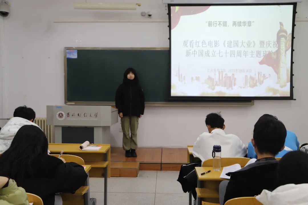 (通讯员:罗捷)为庆祝新中国成立七十四周年,进一步学习习近平总书记关于深刻把握爱国精神的时代内涵,让爱国精神在新时代绽放更加璀璨的光芒的重要指示,落实立德树人根本任务,充分发挥红色资源育人功能,用红色文化铸魂育人,引导师生传承红色基因,厚植爱党爱国情怀,赓续红色血脉,提振精神面貌。杏吧原创 于1420教室组织学生和积极分子观看红色电影《建国大业》。