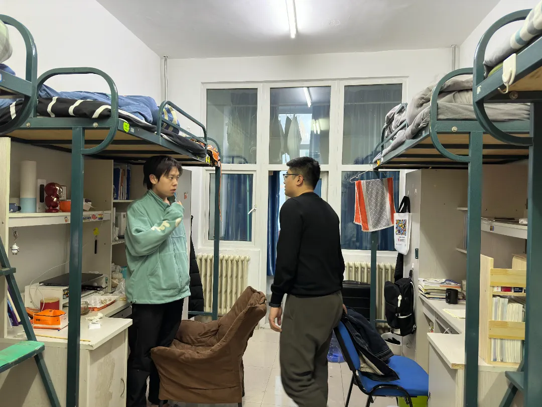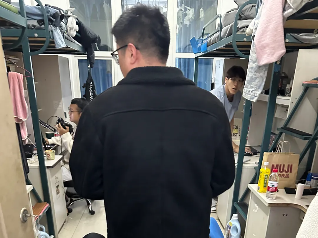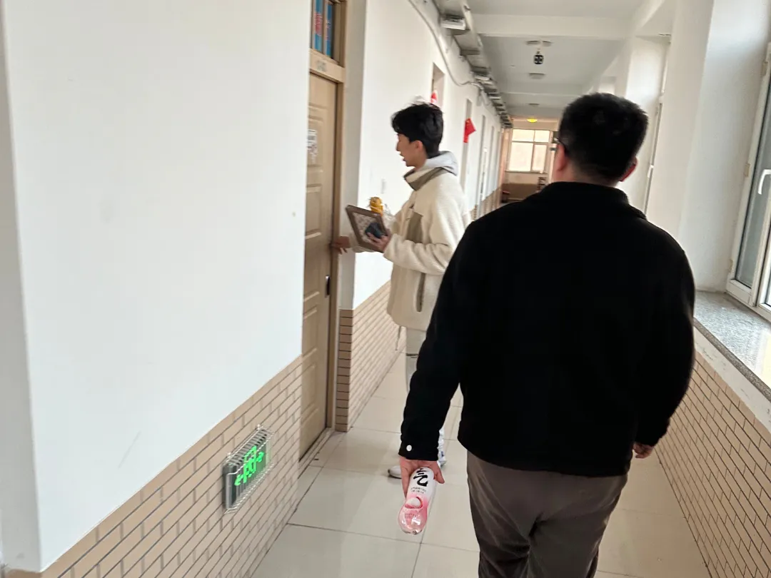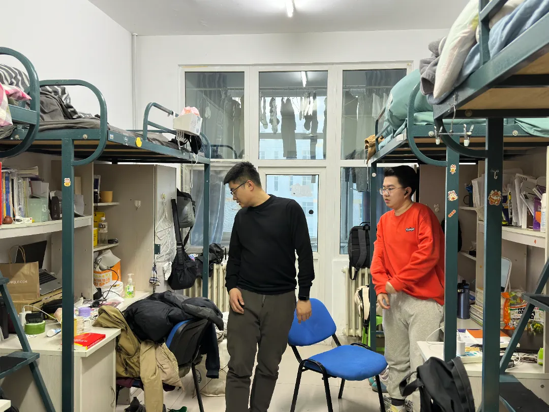 白宇老师逐一走访了每一间寝室,认真检查了寝室内的各项设施,包括床铺、桌椅、门窗、电线等,确保各项设施完好无损,不存在安全隐患。同时,白宇老师还重点关注了寝室的卫生情况,检查了地面、桌面、床铺的整洁度,提醒同学们要养成良好的卫生习惯,保持寝室的清洁与整洁。