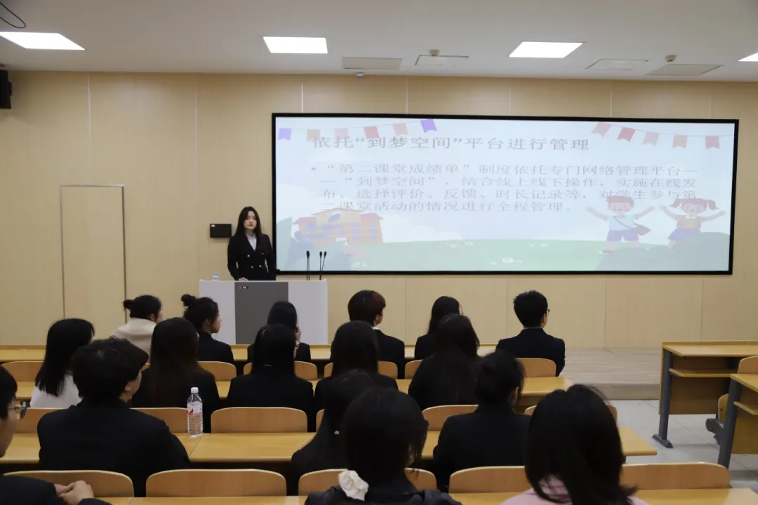 “第二课堂成绩单”制度依托专门网络管理平台——“到梦空间”,结合线上线下操作,实施在线发布、选择评价、反馈、时长记录等,对学生参与第二课堂活动的情况进行全程管理。本科生在完成第一课堂学习要求的基础上,至少修满6个“第二课堂成绩单”学分方可毕业,以后学院的活动在到梦空间发布,大家需要到“到梦空间”app内积极报名,获取更多的学分。