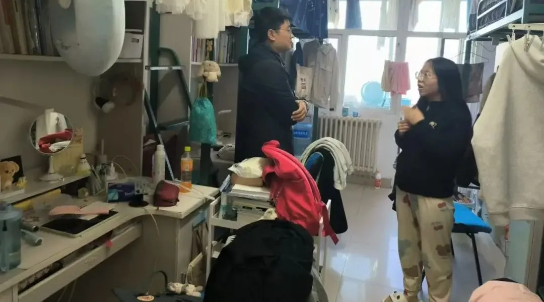 一位好老师不仅是学生学习上的指导者,更是生活中的朋友和引路人。走访过程中,白宇老师与学生亲切交谈,详细了解他们的学习生活情况、思想动态和心理健康状况,对存在的问题进行针对性的解决,并及时给予学生积极的回应和指导。此外还强调了宿舍安全的重要性,并提醒学生注意个人卫生和用电安全,共同维持良好的宿舍环境。