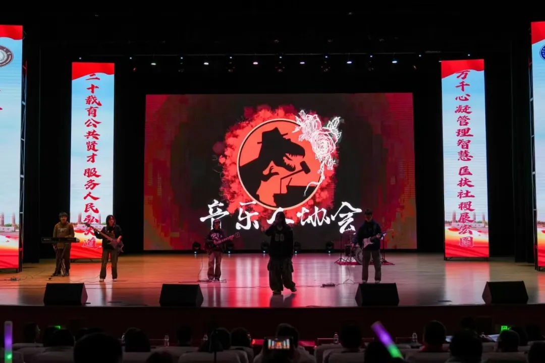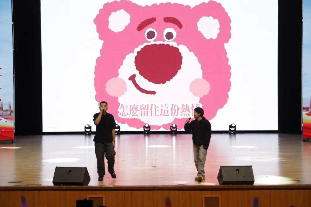 文 艺 汇 演大会第二部分为迎新文艺汇演活动。文艺汇演共13个节目,种类丰富,内容新颖,涵盖了乐队演奏、歌曲串烧、影子剧、话剧、舞蹈等形式多样的表演。最后,文艺汇演活动在《相亲相爱》的盛大歌舞表演中落下帷幕。本次创新争优表彰奖励大会暨2024级迎新文艺汇演活动圆满结束。