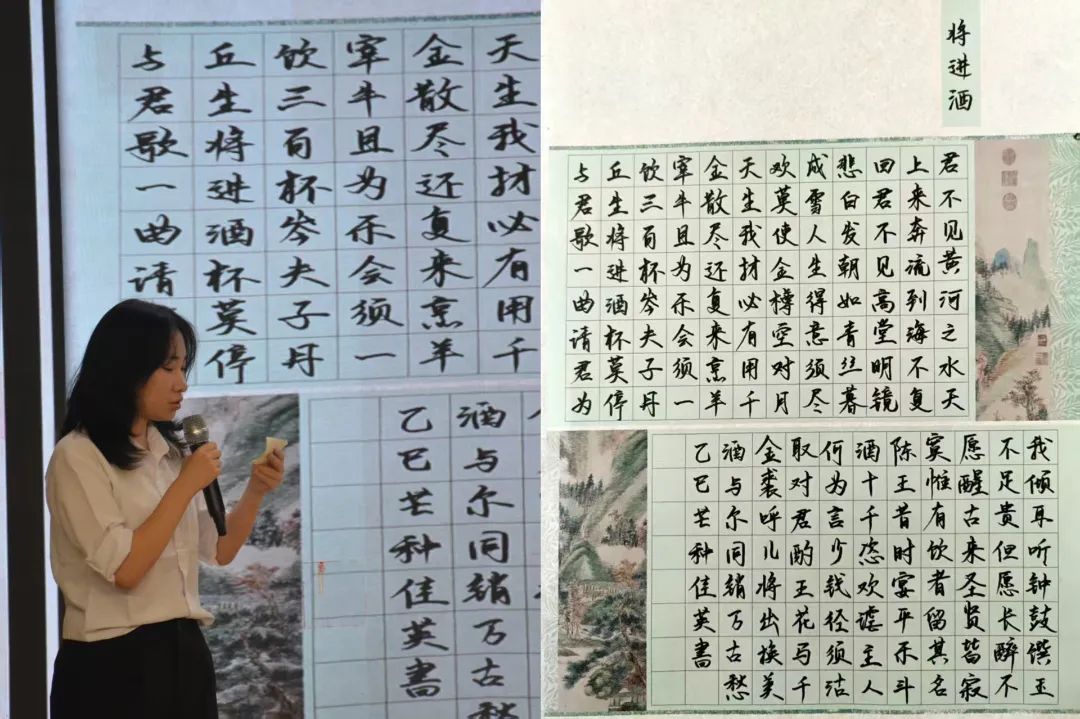 最后一轮书法作品展示,是传统笔墨艺术的集中绽放,选手携楷书、行书等作品亮相。自我介绍后,他们围绕字体特点、笔法运用和创作心境展开讲解,让传统书法艺术的韵味与文化底蕴跃然纸上。