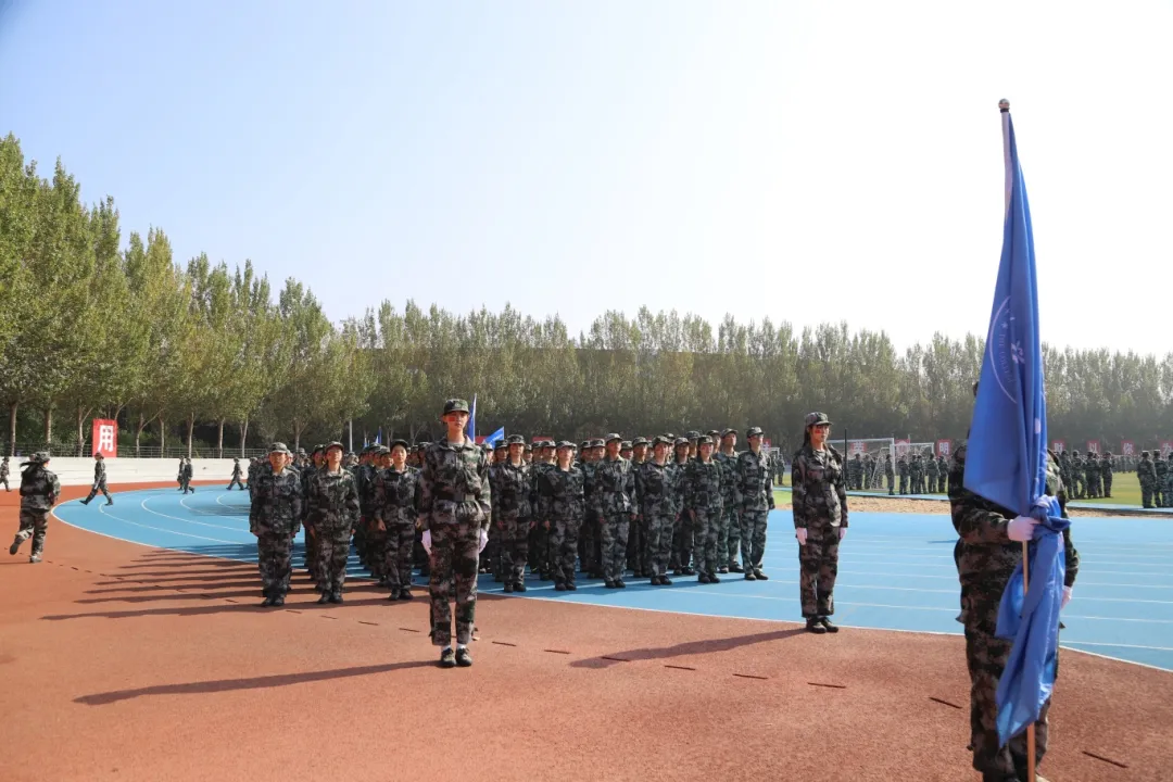 仪式在雄壮的国歌声中拉开帷幕,五星红旗冉冉升起,全体人员肃立行注目礼,嘹亮的歌声里满是青年学子的爱国热忱。随后,分列式表演正式开始。各连队新生身着整齐的军训服,迈着铿锵有力的步伐依次通过主席台,摆臂、踢腿、转身等动作精准划一,嘹亮的口号响彻运动场,充分展现出公管学子昂扬向上的精神风貌与两周军训的扎实成果。
