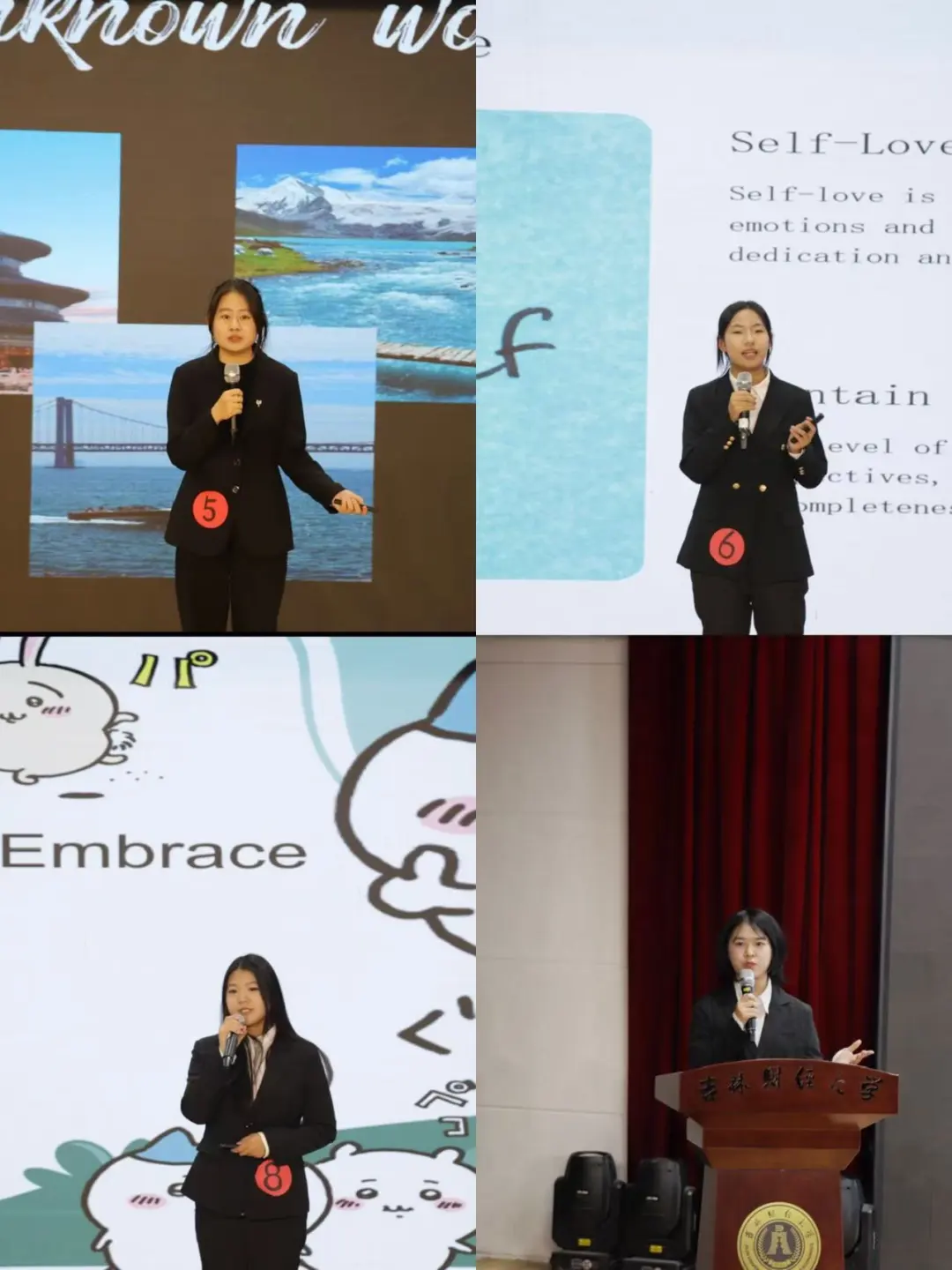 第一轮——自由演讲:八位选手从容登台,以流利的英文、清晰的逻辑和真挚的情感,围绕主题展开深度阐述。没有稿件的束缚,每一句表达都直击人心,展现了各自扎实的语言功底与卓越的表达能力。