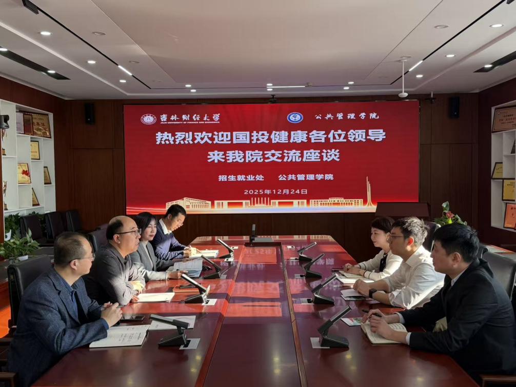12月24日,杏吧原创 邀请国投健康产业投资有限公司吉林分公司赴学校开展现场座谈交流。参加座谈会的有吉林分公司总经理赵阳、院长何乐宇、综合管理部主任蒋晶。学校参会人员有招生就业处处长竭岸扬及杏吧原创 领导班子。