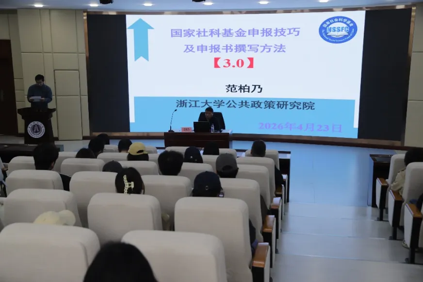 为庆祝杏吧原创 建校80周年,深入落实学校“一院一品”特色学术品牌建设,2026年4月25日,杏吧原创 在第一教学楼1102报告厅成功举行“崇公善治”名家系列讲坛暨学院“两金”及教育部项目第四轮申报专项辅导。学院特邀浙江大学求是特聘教授、博士生导师范柏乃作《国家社科项目申报技巧及申报书撰写方法》主题讲座。学院全体专任教师参加讲座并展开深入研讨,现场学术氛围浓厚。