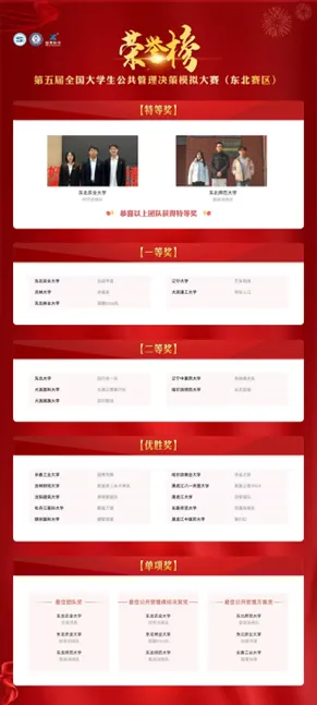 近日,第五届全国大学生公共管理决策模拟大赛(东北赛区)赛事在哈尔滨圆满落幕。由我院马姗伊老师指导,刘子搏、覃一涓、臧珂三位同学组建的“致富路上永不掉队”参赛队,在黑吉辽三省二十一所高校的二十二支参赛队伍中荣获赛事优胜奖。